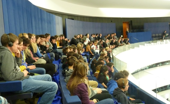Skupina je z zanimanjem v živo spremljala plenarno zasedanje Parlamenta iz tribun nad največjo dvorano v poslopju. Prisluhnili so debati med evropskimi poslanci, ki je sledila nastopu visoke predstavnice Unije za zunanje zadeve, Catherine Ashton, na temo 22. zasedanje Sveta Združenih narodov za človekove pravice.