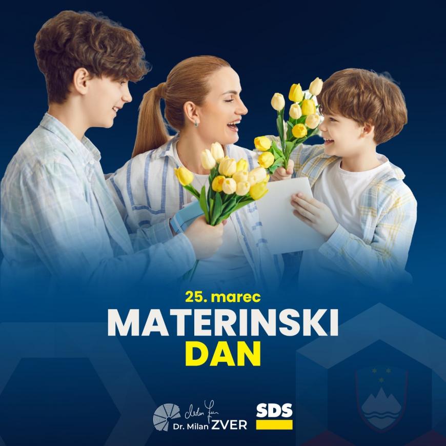 Dr. Milan Zver je takole voščil ob današnjem materinskem dnevu: " Drage mame, 25. marca obeležujemo materinski dan. Ob tem vam iskreno čestitam in izražam globoko hvaležnost za vso ljubezen, skrb in predanost, ki jih razdajate. Naj vam današnji dan prinese toplino, spoštovanje in trenutke ponosa na vse, kar ustvarjate.  Hvala vam za vse, kar ste in kar dajete. Vse dobro ob materinskem dnevu!
