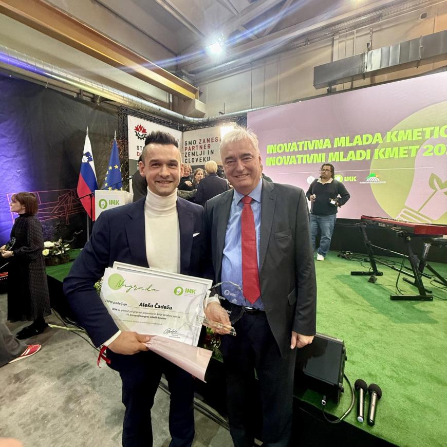Evropski poslanec dr. Milan Zver je čestital letošnjemu zmagovalcu, inovativnemu mlademu kmetu Alešu Čadežu.