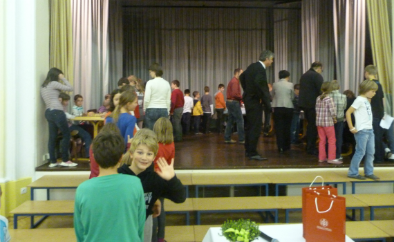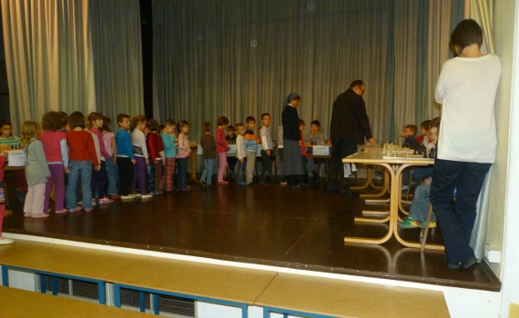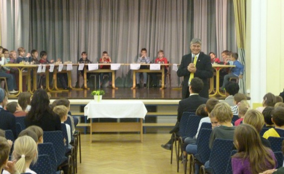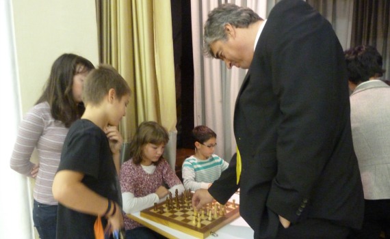 Dr. Zver je nato Osnovni šoli Alojzija Šuštarja predal 15 šahovskih kompletov na katerih so učenci odigrali simultanko s šahovskim velemojstrom Georgom Mohrom.
