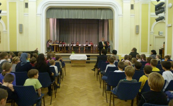 Uvodoma so učenci gosta pozdravili z zanimivim kulturnim programom, v nadaljevanju pa je ravnateljica šole dr. Marina Rugelj na kratko predstavila dejavnosti in uspešnost šole.