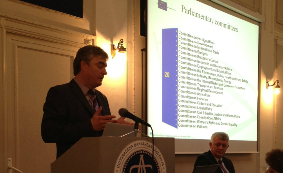 Dr. Milan Zver je danes predaval na beograjski Fakulteti za bančništvo, zavarovanje in financiranje. Študentom in ostalim slušateljem je predstavil delovanje Evropskega parlamenta in ostalih evropskih inštitucij, nato pa je govoril o konsolidaciji bolonjskega procesa.