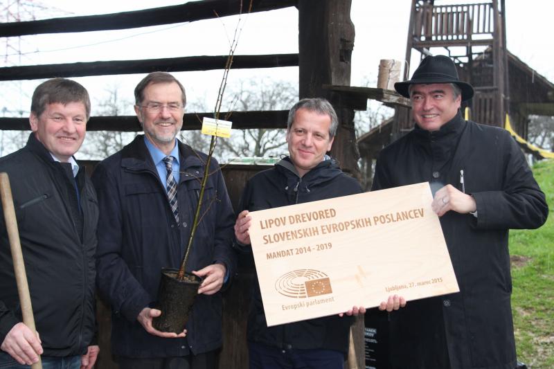Po koncu novinarske konference je dr. Milan Zver skupaj s kolegi evroposlanci posadil sadiko lipe.